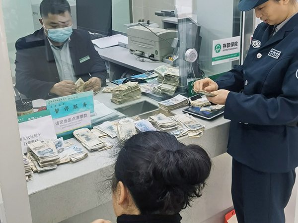 最终,在该支行3名工作人员近1个小时的努力下,将所有零钱如数清点完毕,共计4.3万元,并成功为该客户兑换残损币,挽回了一大半损失。