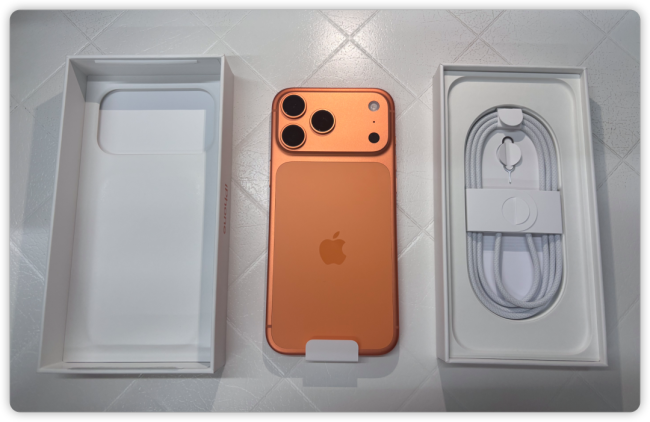 本年的开箱测评开端。新机的包装盒规划与曩昔根本共同,侧边的苹果logo和“iPhone”字样选用产品同款色彩书写。新参加的星宇橙是近些年来Pro系列中罕见的暖系配色。包装盒内容简略,包含iPhone本体和连接线。因为新款Pro系列的特别造型,苹果还为包装盒的后摄方位规划了一个长方形凹槽。总的来看,iPhone 17 Pro Max在外观规划上带来了一种耳目一新的感觉。不只后摄模组进行了从头规划,下方的拼色超瓷晶面板也十分亮眼。机身尺度仍然是6.9英寸,合适大手用户。iPhone 17 Pro系列选用了一体化铝金属机身规划,握持手感显着更佳。苹果对iPhone 17 Pro Max的棱角边际进行了柔化处理,裸机运用时的“硌手”状况有所缓解。